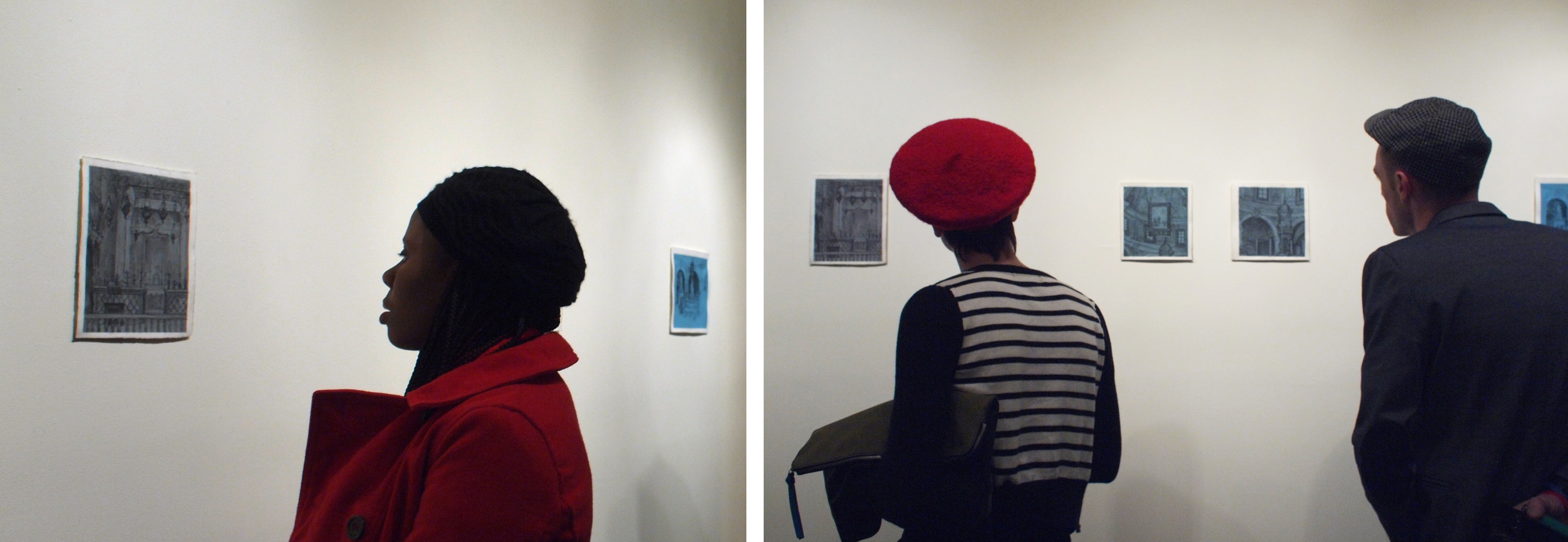 During a two month stay in Italy, Molly Kaderka spent a great deal of time in the churches and crypts of Florence – studying their interiors and examining the effects of light, time, and space. This set of small drawings serves as the record of her experience observing those spaces. The Catholic churches she frequented show the effects of hundreds of years of use – with layers of details being added over time, and composites of many architectural and artistic styles.