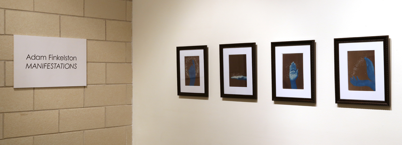 Manifestations is an exhibition of two series of alternative process photographs: the namesake series Manifestations consists of a set of hand gestures in blue, while the self-portrait series Autographons are occluded apparitions and abstractions. Through a variety of analog and digital photographic methods, Finkelston investigates the magic of artistic action, scientific processes, and potential energy.