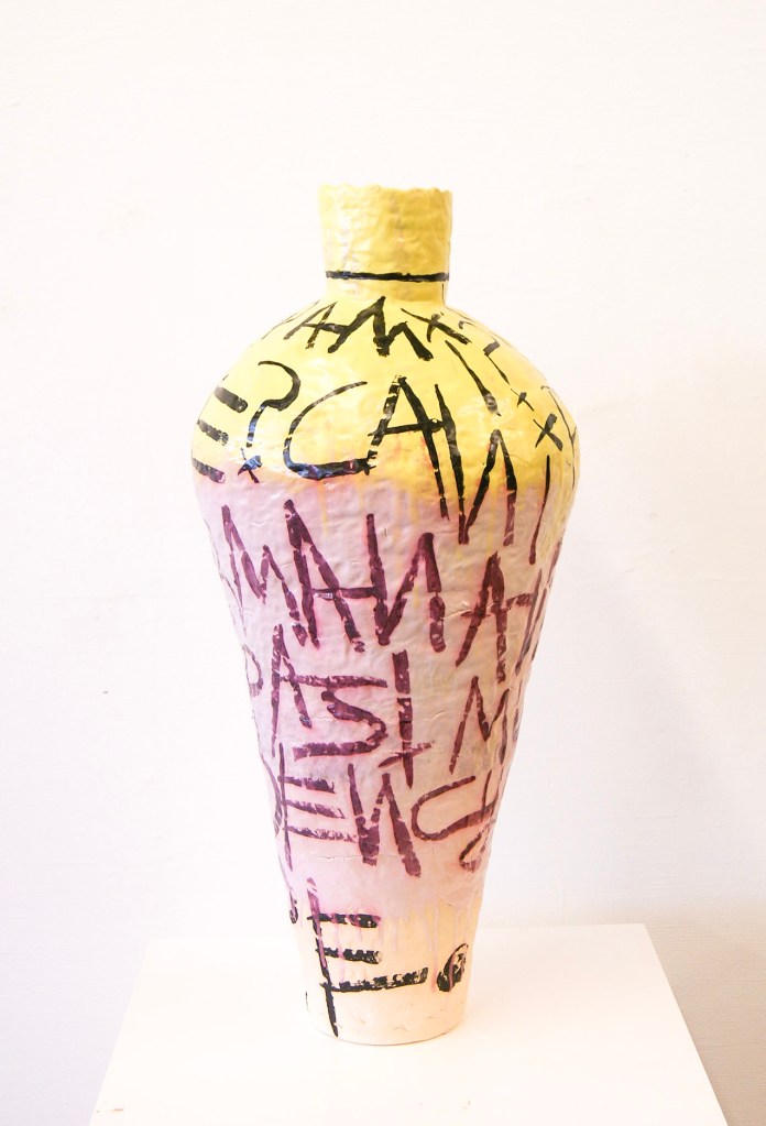 We hope you’ll join us on 3rd Friday, September 16th, as Kiosk Gallery presents INwords, a solo exhibition of ceramic work by Paul Maloney. Here the artist uses the traditional format of the ceramic vessel as a ground upon which to experiment with writings that express his own style of personal storytelling. In these works, the immediacy of stream-of-consciousness writing plays as a foil to the process-oriented nature of ceramics.